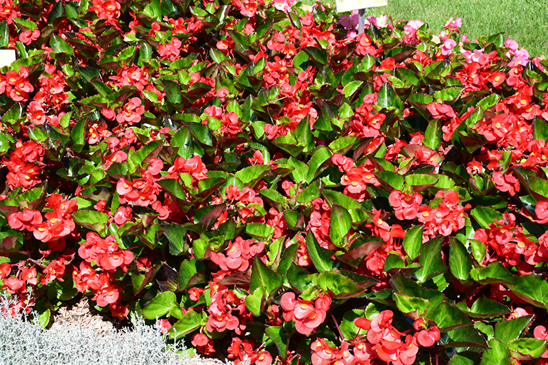 Big® Red Green Leaf Begonia features dainty clusters of red orchid-like flowers at the ends of the stems from mid spring to mid fall. Its attractive glossy heart-shaped leaves remain dark green in color throughout the year.